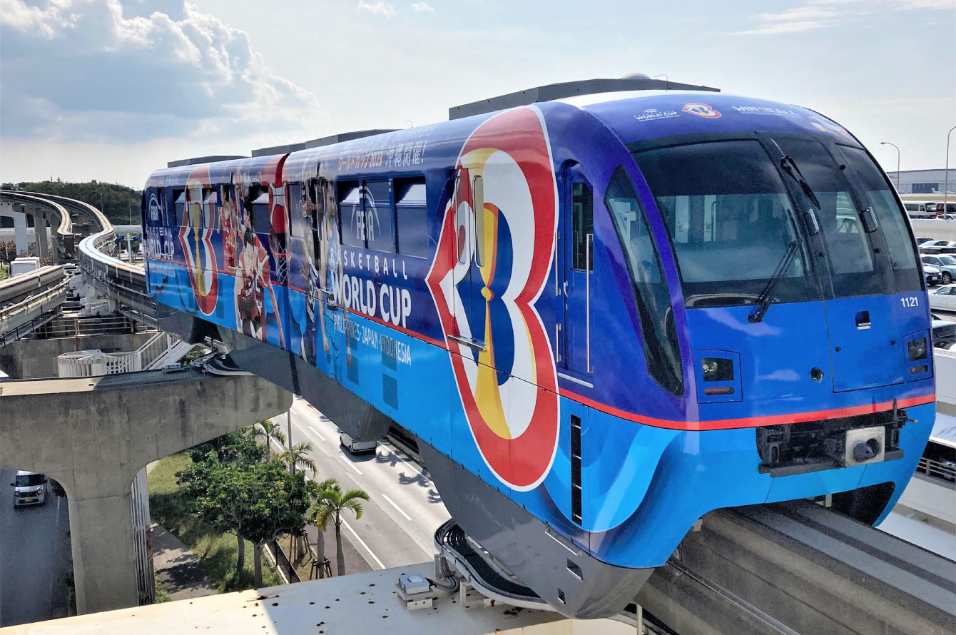 2023年の<FIBA バスケットボール ワールドカップ>の予選会場として沖縄県が選ばれたことを記念して作成されたラッピング列車。