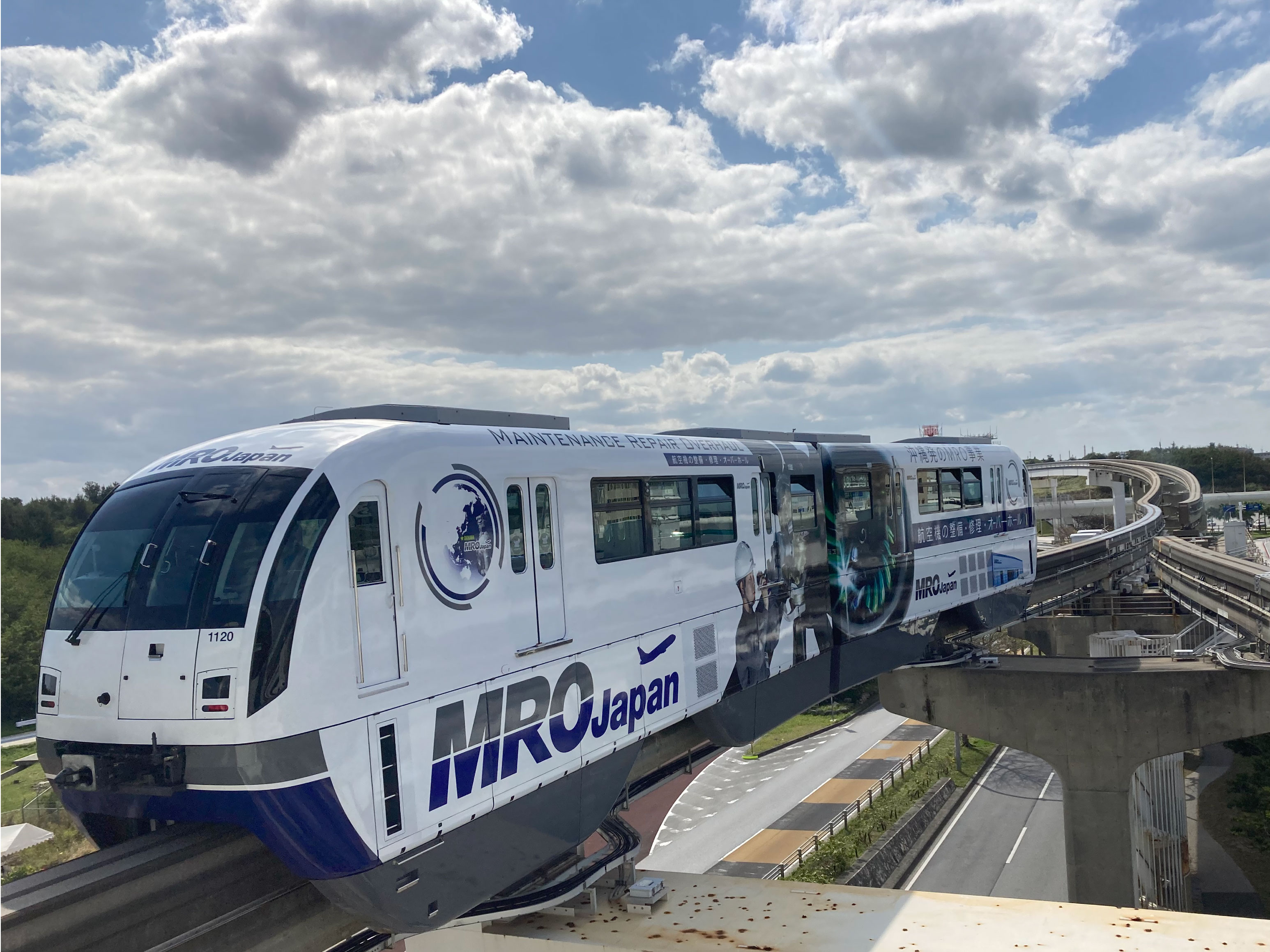 航空整備事業について県民の皆様により興味を持ってもらえるように、との思いで作成したラッピング列車。エンジン部やプロペラを整備している画像は圧巻の一言。