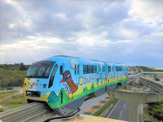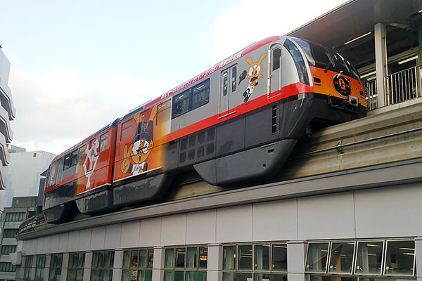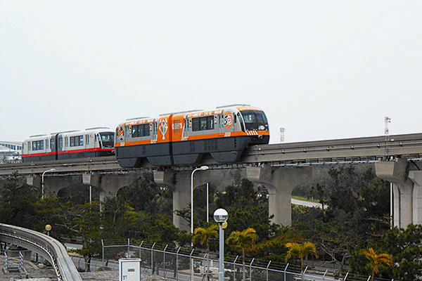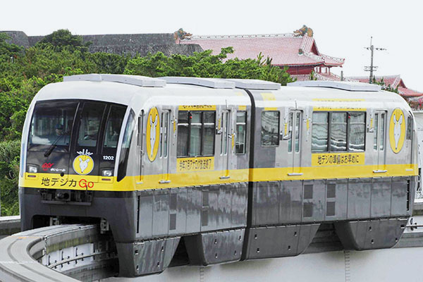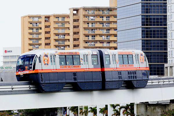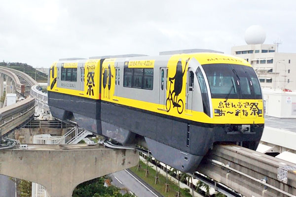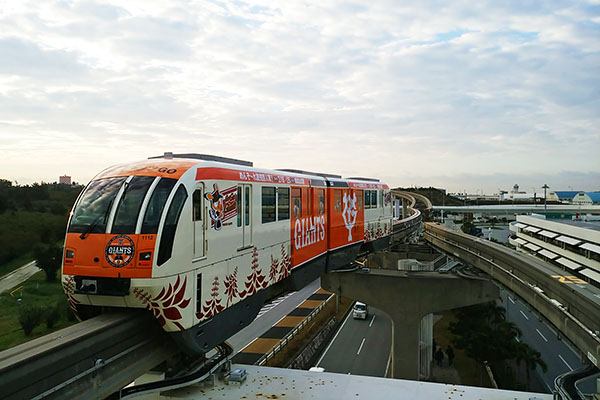 読売巨人軍の那覇キャンプを、沖縄を挙げて歓迎するために運行。ジャイアンツ・カラーとキャラクターで車体をデザインしました。沖縄セルタースタジアム那覇でのキャンプ歓迎式典に合わせ、奥武山公園駅を通過しました。