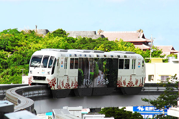 コーポレートカラーのオレンジ色をメインとし、車体中央に首里城をあしらったデザインです。